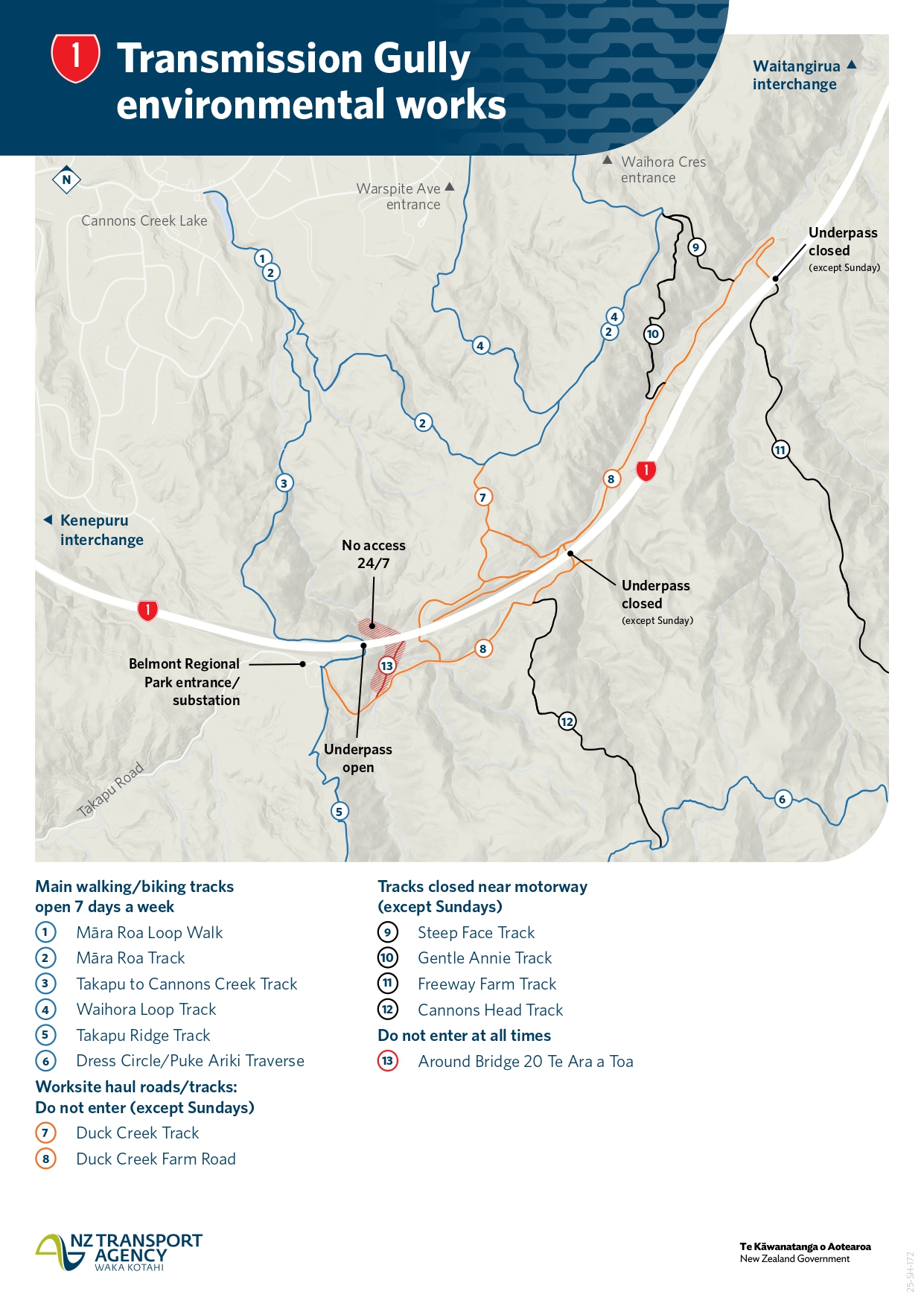 From Porirua - The Cannons Creek entrance provides you walking access to fantastic viewing points over the Transmission Gully motorway construction